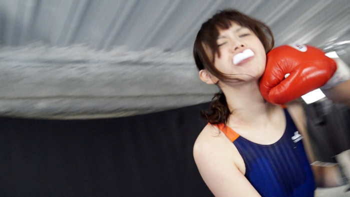 女子ボクサーにパンチを打ち込み